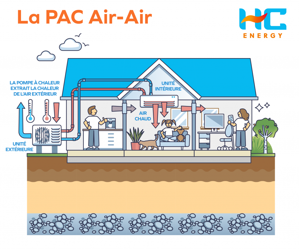 • Écologique: En utilisant l’air comme source d’énergie, la PAC air-air émet moins de gaz à effet de serre.